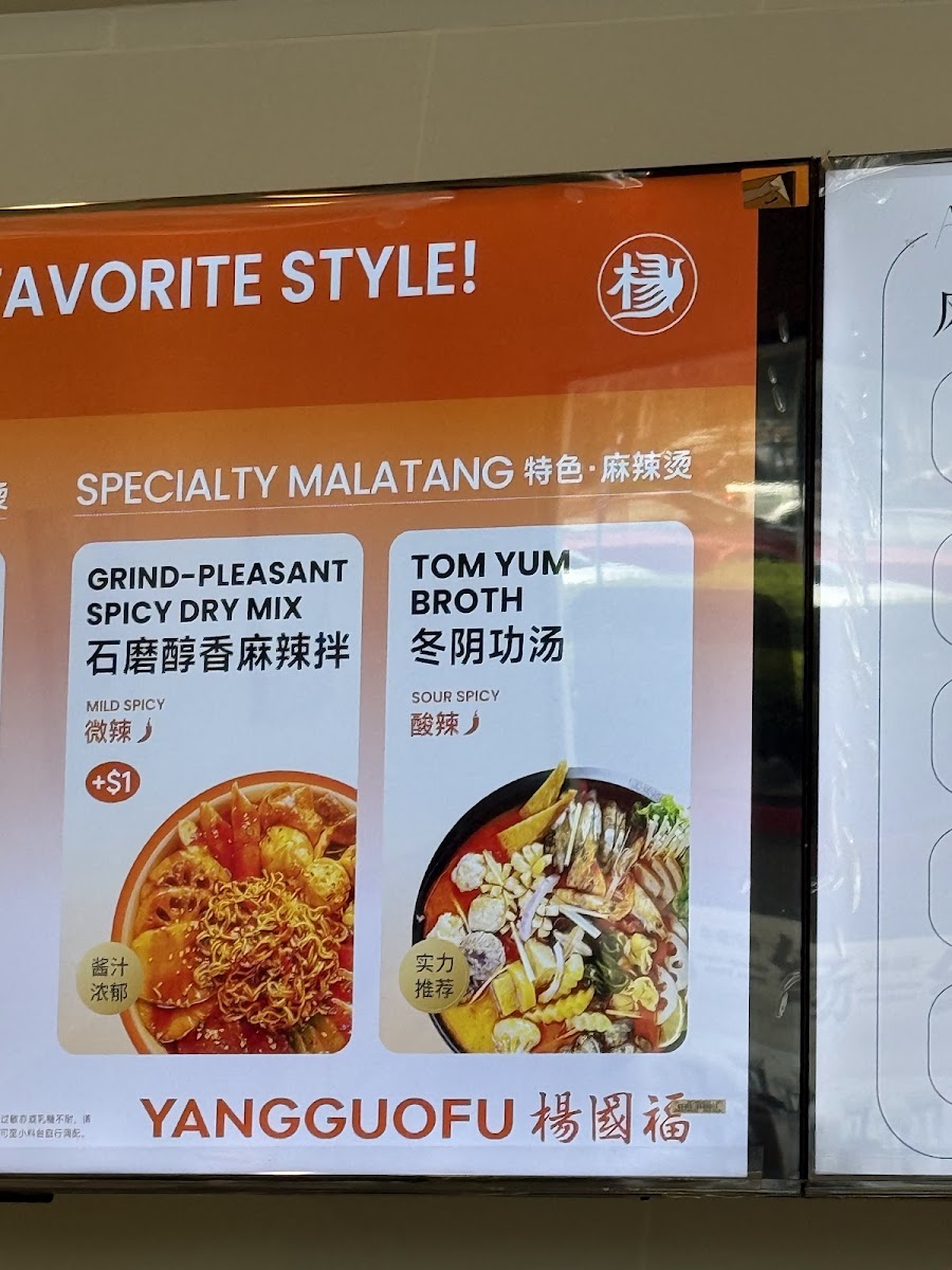 YGF Malatang 杨国福麻辣烫 Menu